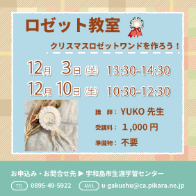 12月もお馴染みの教室を含めてたくさんの教室があります。興味のある教室をぜひお試しください。